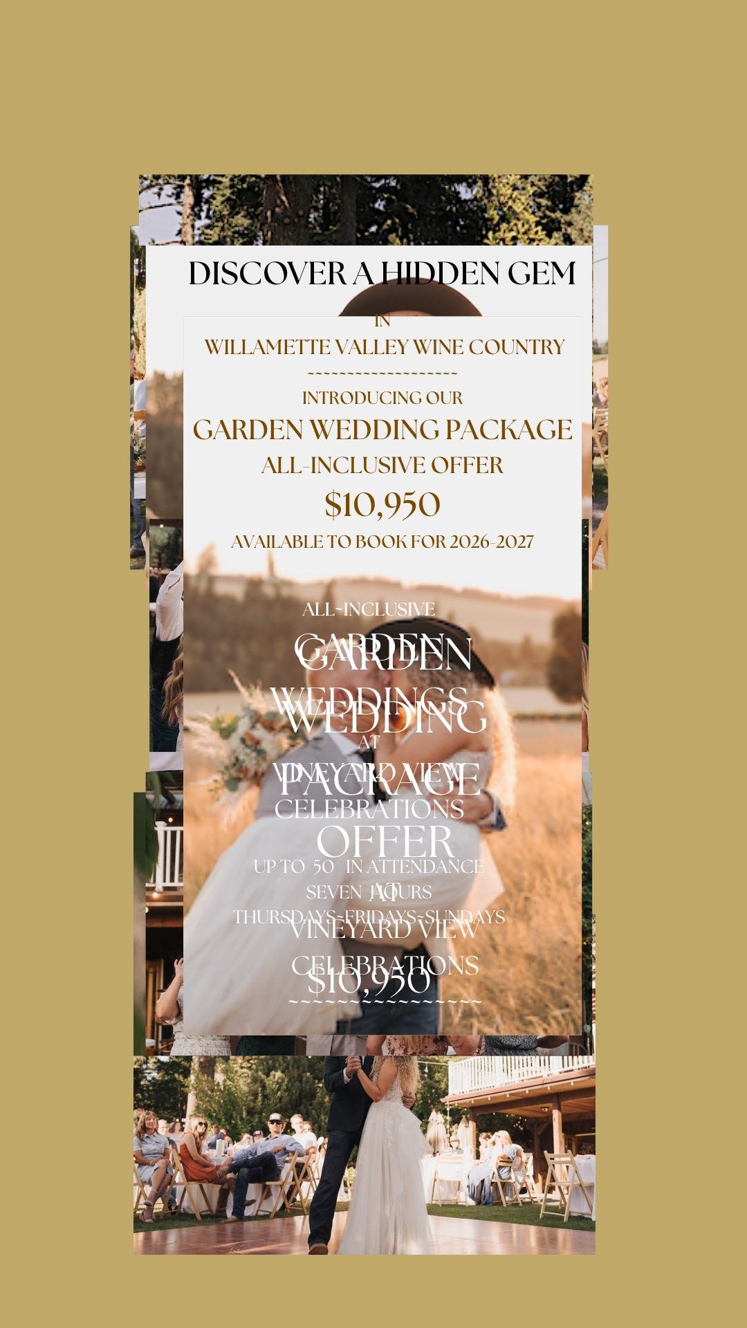 Just one hour south of Portland & thirty minutes from Salem, a picturesque backdrop for your Boutique Wedding awaits with opportunities for stunning photos around every bend . . .